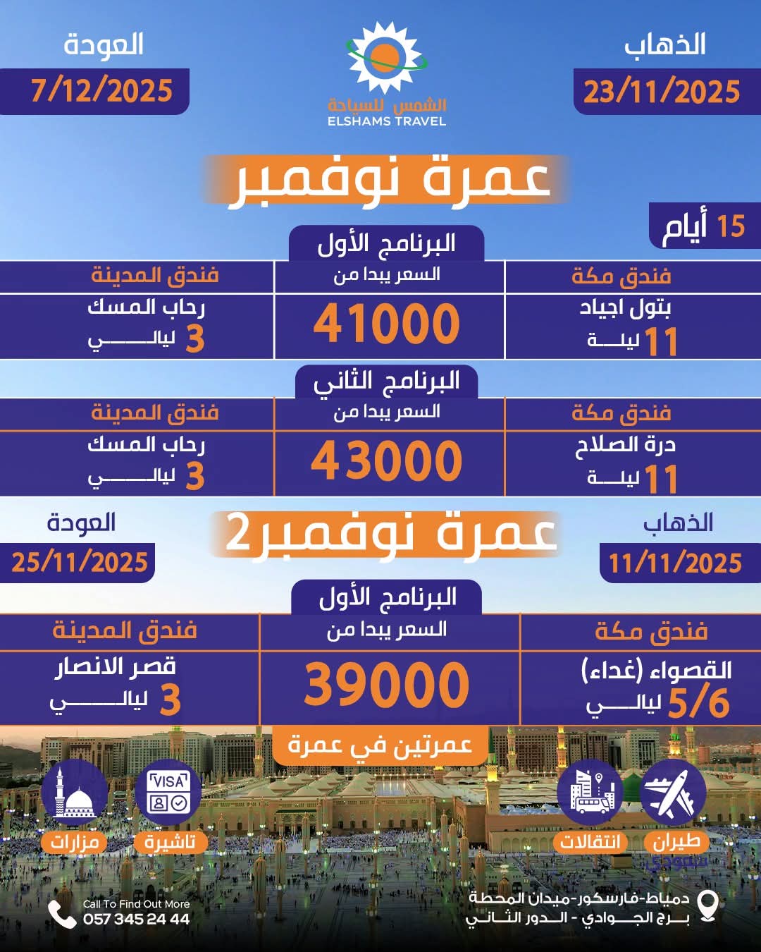تشمل البرامج: الطيران + الانتقالات + التأشيرة + المزارات